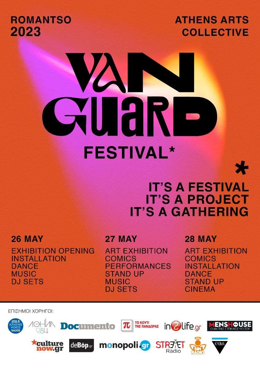 Μία γιορτή τέχνης με συναυλίες, εκθέσεις εικαστικών/έργων τέχνης, performances χορού, παραστάσεις Stand Up και κινηματογραφικές προβολές θα πραγματοποιηθεί το τριήμερο 26 - 27 -28 Μαΐου στο Ρομάντσο, στο πλαίσιο του πρώτου Vanguard. Προσωπικά project (μουσικής, χορού, εικαστικών), αυτοσχεδιασμοί, παραστάσεις, προβολές και εκθέσεις επιλέχθηκαν με στόχο να αναδείξουν το "χρώμα" και την ιδιοσυγκρασία των συντελεστών.