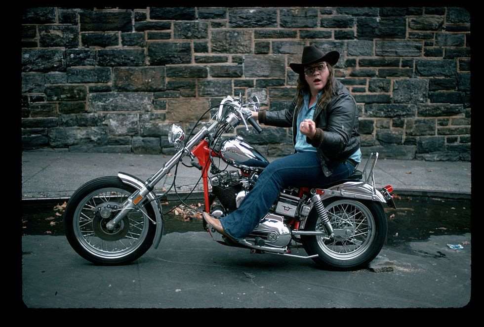 Ο πρόσφατα εκλιπόντας τραγουδιστής και ηθοποιός, ποζάρει με το δικό του, ιδιοσυγκρασιακό στυλ, πάνω στη μοτοσικλέτα του. Όλα αυτά, το σωτήριο έτος 1978.