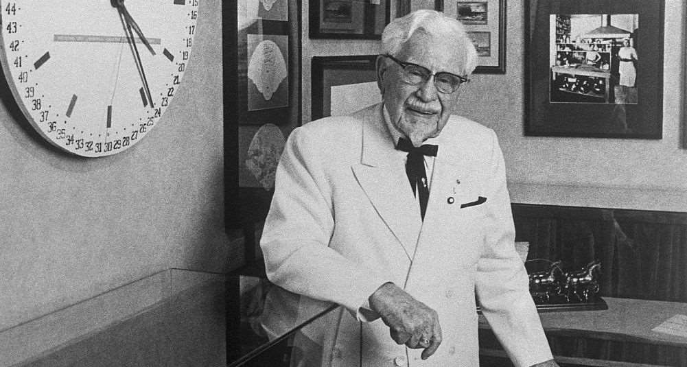 Ο Sanders πέθανε το 1980, αλλά η KFC εξακολουθεί να χρησιμοποιεί τη μορφή του στο εμπορικό σήμα της.