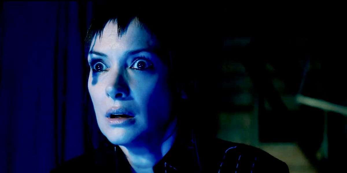 Στην κεντρική φωτογραφία βλέπεις τη Winona Ryder, ενώ μαζί της πρωταγωνιστούν και οι Michael Keaton, Catherine O'Hara, Justin Theroux, Jenna Ortega και Willem Dafoe.