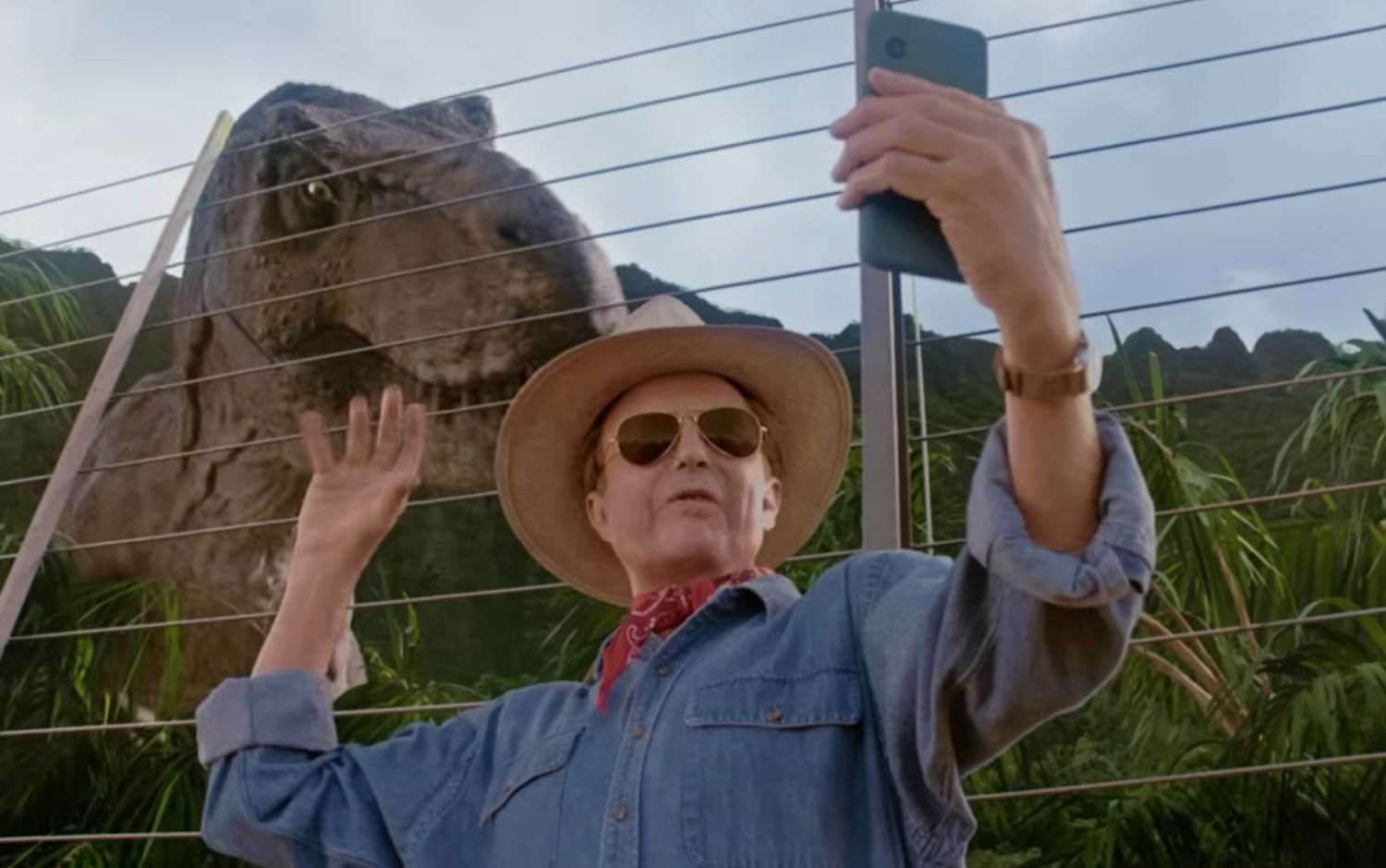 Η διαφήμιση αναπαράγει εμβληματικές στιγμές. Ο Grant και ο Malcolm βρίσκονται ξανά στο αυτοκίνητο, μπροστά από το κλουβί του T. rex, με τη βροχή να πέφτει. Η Ellie σχολιάζει: "Νομίζω ότι ξαναμπαίνουμε σε ρυθμό", μια καθαρή αναφορά στην αρχική ατάκα της ταινίας. Λίγο αργότερα, ο Ian Malcolm χαλαρώνει δίπλα στην πισίνα και πετά το αναμενόμενο σχόλιο για το ότι "η ζωή βρίσκει τον δρόμο της" – εδώ, με αφορμή τη σύνδεση στο ίντερνετ.
