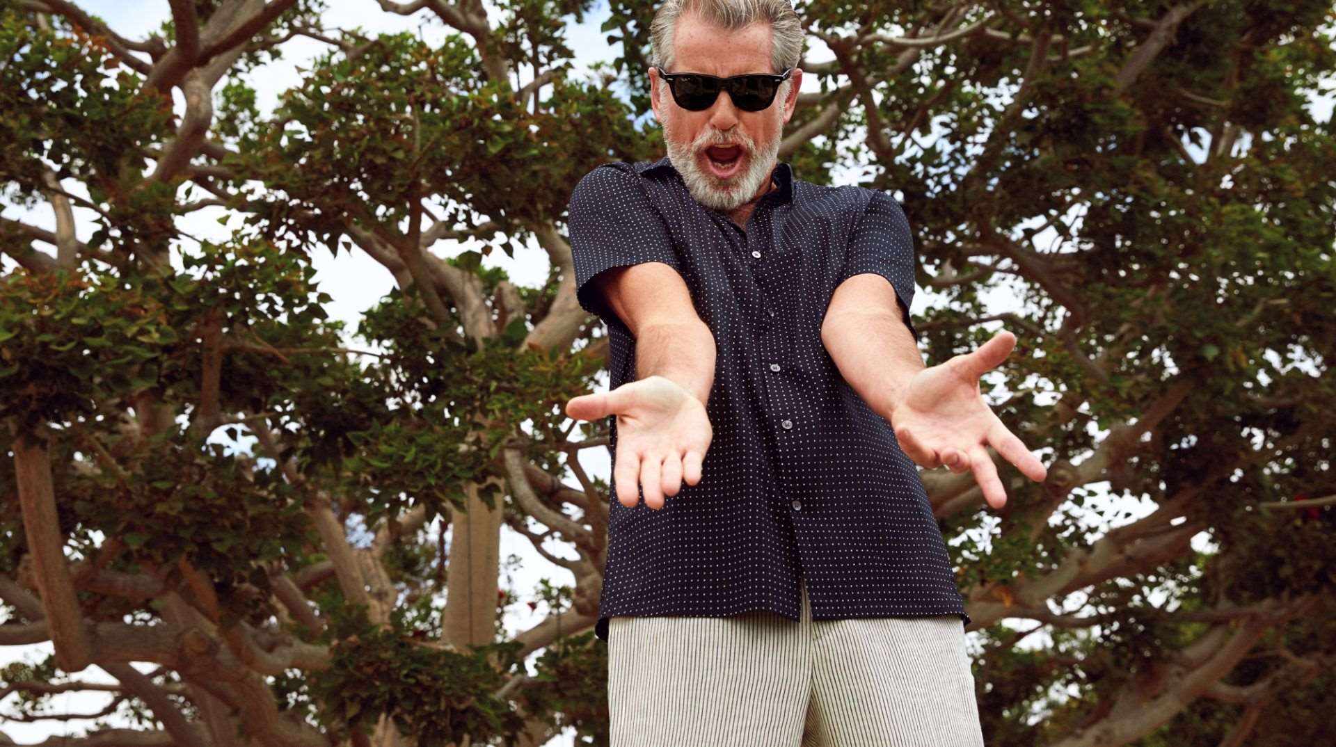 Πάντως, είναι δύσκολο να φανταστεί κάποιος ότι ο Brosnan δεν είναι διασκεδαστικός τύπος. Μιλά εύκολα για την προσωπική του ζωή και δε φοβάται να αυτοσαρκαστεί αλλά και να διηγηθεί τραγελαφικές ιστορίες από τα παλιά, όπως ένα αστείο περιστατικό που είχε συμβεί στη φίλη του Julianne Moore ή για το πώς πληροφορήθηκε το θάνατο του John Belushi από υπερβολική δόση ναρκωτικών. "Εκείνες τις ημέρες του 1982 βρισκόμουν σε γυρίσματα για τη σειρά Remington Steele του CBS. Η τότε σύζυγός μου Cassandra και τα δύο μας παιδιά διέμεναν στο ξενοδοχείο Chateau Marmont. Άνοιξα την τηλεόραση και τι να δω! Το γιο μου μέσα στο πλήθος κόσμου που είχε συγκεντρωθεί έξω από τη σουίτα του John".