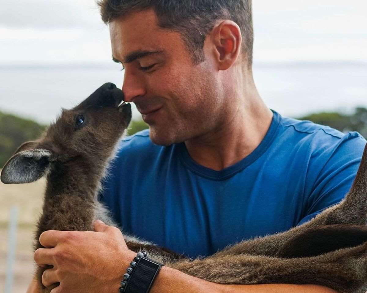 Ο Efron κοινοποίησε επίσης φωτογραφίες και βίντεο από το ταξίδι του στο νησί στο Instagram, μεταξύ άλλων μία στην οποία κρατά ένα μωρό καγκουρό και μία στην οποία κολυμπά με δελφίνια.