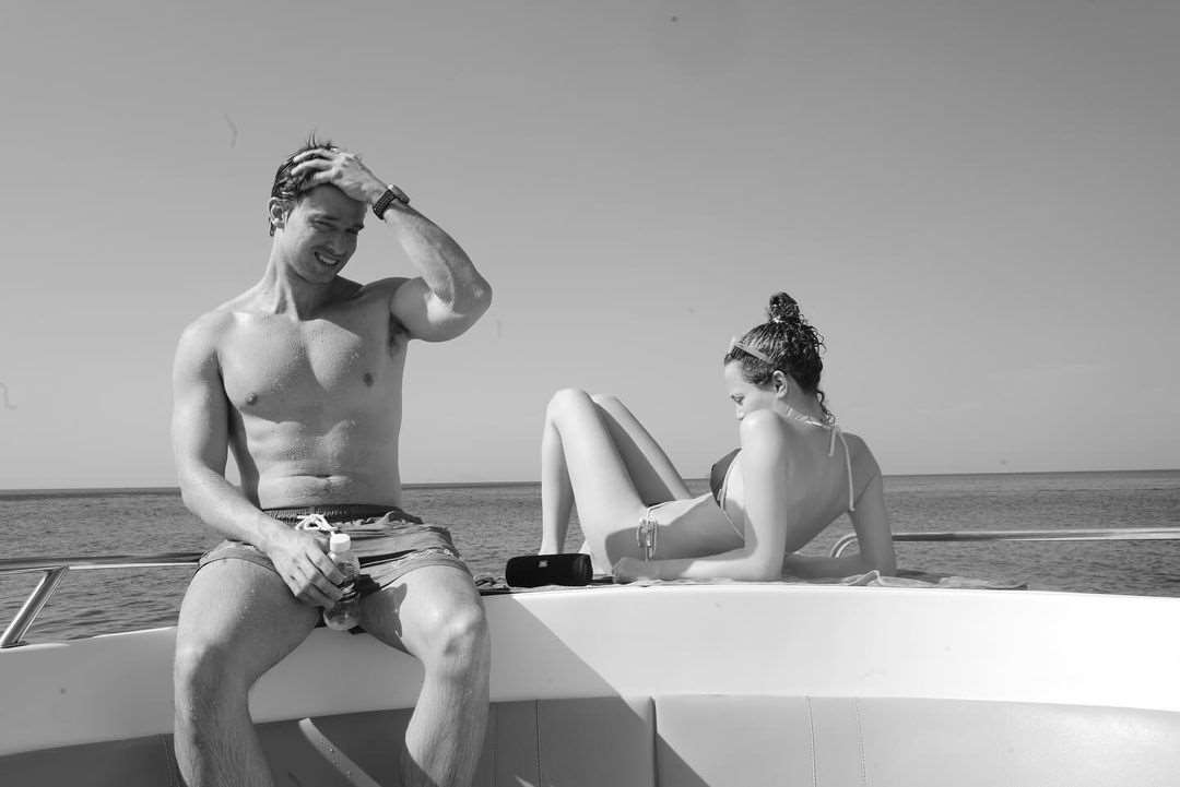 Ο Patrick Schwarzenegger και η Iris Apatow διακρίνονται σε μία από αυτές να χαλαρώνουν σε ένα σκάφος. Σε άλλη φωτογραφία η Sarah Catherine Hook βρίσκεται μαζί με την ομάδα στο εσωτερικό του σκάφους. Τέλος, υπάρχουν και μερικές selfies από παραλία της Ταϊλάνδης και μία πόζα του Schwarzenegger στο νερό.