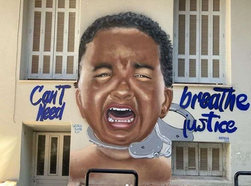"Μπορούμε να σβήσουμε το 2020; Όχι, αλλά μπορούμε να μάθουμε από αυτό": Είναι το δυνατό μήνυμα που στέλνει ο καλλιτέχνης Hambas στην ανάρτησή του στο instagram για το νέο γκράφιτι που έφτιαξε στην Αθήνα. Όμως η ίδια η εικόνα του στέλνει ένα μήνυμα ακόμη πιο ηχηρό: Δεν μπορώ να αναπνεύσω - Χρειάζομαι δικαιοσύνη ("Can’t breathe - Need Justice"). Το γκράφιτι δημιουργήθηκε από τον street artist σε δρόμο του Μεταξουργείου για τη δολοφονία του αφροαμερικανού Τζορτζ Φλόιντ από αστυνομικούς στα τέλη Μαΐου στη Μινεάπολη. Μια δολοφονία που προκάλεσε έκρηξη διαδηλώσεων στις ΗΠΑ αλλά και σε άλλες χώρες με αίτημα των διαδηλωτών την αντιμετώπιση του ρατσισμού και της αστυνομικής βίας.