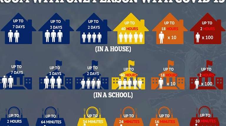 Πόση ώρα χρειάζεται για να κολλήσει κάποιος σε σπίτι, γραφείο, σχολείο και εστιατόριο.