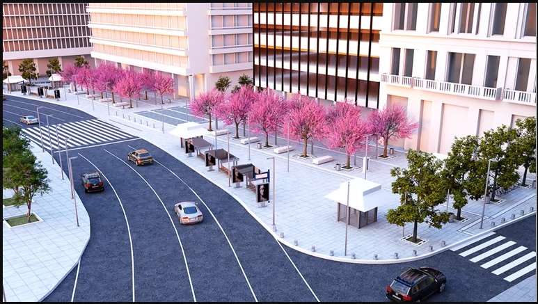 To σχέδιο περιλαμβάνει μεγάλη διαπλάτυνση πεζοδρομίων, φύτευση συνολικά 28 δέντρων, φροντίδα για ΑμΕΑ, σύγχρονο φωτισμό.