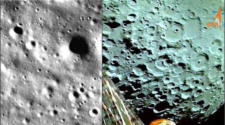 Οι πρώτες εικόνες από την άκρως επιτυχημένη διαστημική αποστολή της Ινδίας στον Νότιο Πόλο της Σελήνης.