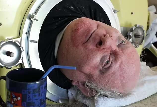 Ο αναπνευστήρας, ένα μεγάλο κίτρινο μεταλλικό κουτί, απαιτεί από τους ασθενείς να ξαπλώνουν μέσα σε αυτόν, με τη συσκευή στερεωμένη σφιχτά γύρω από το λαιμό τους.