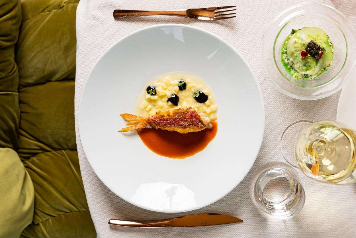 Το γιουβέτσι αστακού με ψητή ντομάτα και βούτυρο αστακού με μπούκοβο είναι από τους λόγους που θα επέστρεφε κανείς ξανά και ξανά ενώ η πολύ καλή γλώσσα θα μπορούσε να είναι ακόμη καλύτερη εάν δεν τη σκέπαζε αρκετά η βελουτέ σουπιάς. Έξοχα μαγειρεμένο το ντουέτο αρνιού με αμπελόφυλλα και πουρέ αγκινάρας (συν την εθιστική σάλτσα του αρνιού, με λεμονοθύμαρο) και στο ύψος των περιστάσεων ο κρασάτος κόκορας σε ανιολότι.