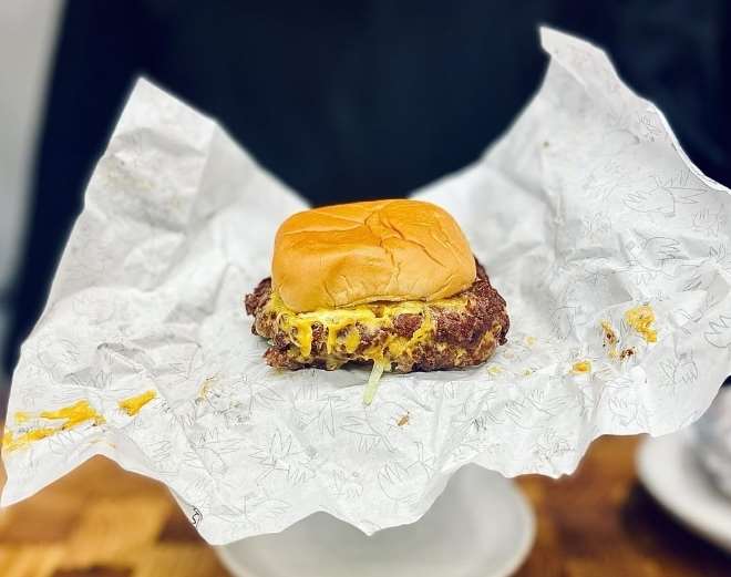 Ο αξιόλογος σεφ Βαγγέλης Λεούσης παρουσιάζει τη δική του πρόταση για smash burger και το κάνει με τρόπο ζουμερό, άμεσα και λαχταριστό. Πέντε επιλογές (Cheeseburger, Wagyu, Brisket, Chicken buttermilk και Vegetarian με μπιφτέκι ρεβιθιού-μανιταριού), συν δύο σαλάτες και άλλα τόσα ορεκτικά, μαζί με τρεις οψιόν σε πατάτες και γλυκό. Info: Ερατοσθένους 3, Παγκράτι, τηλ. 210 7526173.