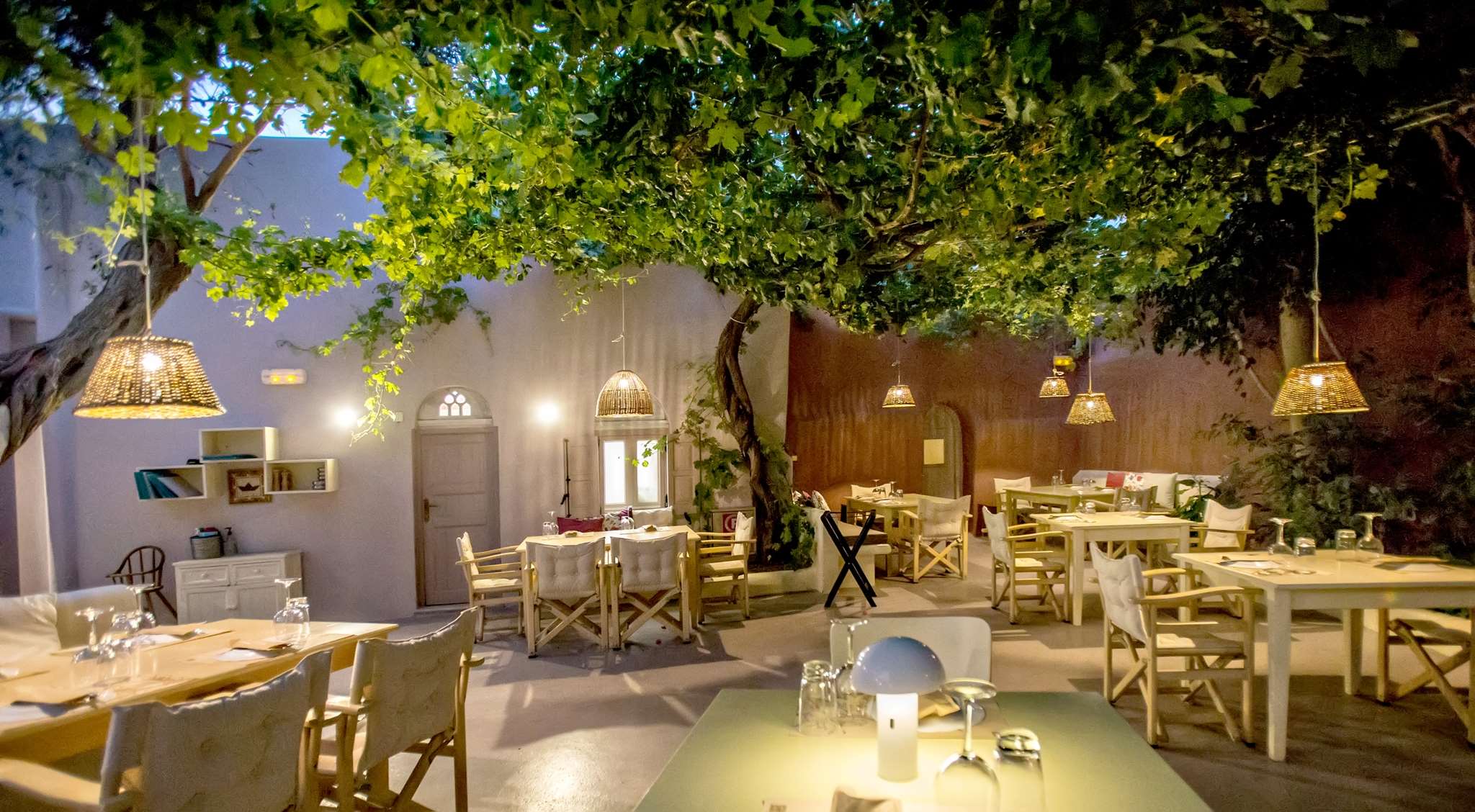Το παλιό θερινό σινεμά έχει μετατραπεί σε μια καταπράσινη, δροσερή εσωτερική αυλή, που αγκαλιάζεται από μια επιβλητική κληματαριά∙ στην άκρη της, το παλιό χαμάμ έχει αναστηλωθεί υποδειγματικά και λειτουργεί ως κάβα για γευσιγνωσίες.