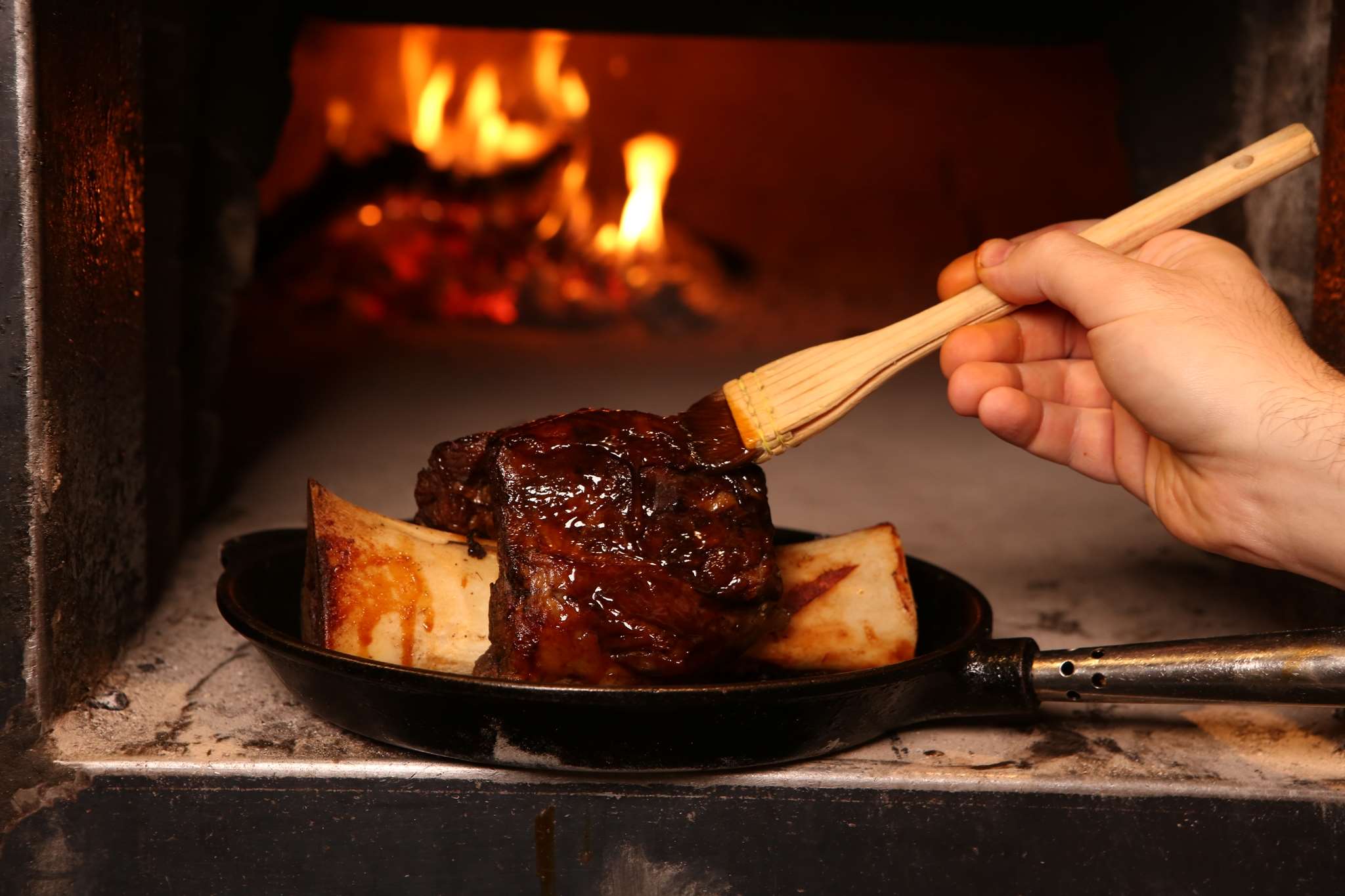 Γκραν φινάλε -ναι, είχε κι άλλο- με οσομπούκο στον ξυλόφουρνο με τραχανά α λα Μιλανέζε. Ξυλοφουρνισμένο το κρέας, δεν παρουσιάζει καμία αντίσταση με το που το ακουμπά το πιρούνι σου, την ίδια στιγμή που μαζί με τη σάλτσα του σερβίρουν νοστιμιά και οικειότητα - το αυτό ισχύει, σε ελαφρώς πιο πρωτόγνωρη σύνθεση, και για τον μαγειρεμένο με μιλανεζολογική υπομονή και ελληνικότατη παρουσία τραχανά.