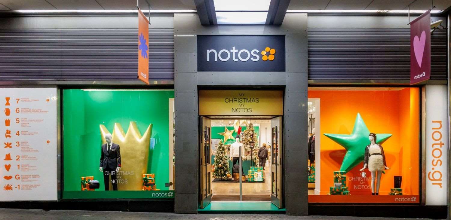 Η εορταστική Shopping εμπειρία ξεκινάει από τις νέες Xmas βιτρίνες στα ανανεωμένα πολυκαταστήματα notos. Κομψά σύνολα για όλη την εορταστική περίοδο καθώς και κορυφαίες προτάσεις Χριστουγεννιάτικων δώρων περιμένουν τους επισκέπτες των πολυκαταστημάτων.