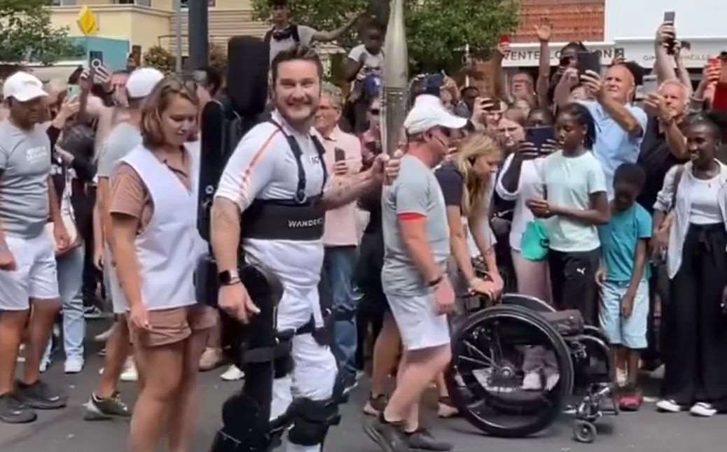 Η συγκλονιστική στιγμή που ένας παραπληγικός αθλητής περπατά ξανά ως λαμπαδηδρόμος στους Ολυμπιακούς Αγώνες 2024