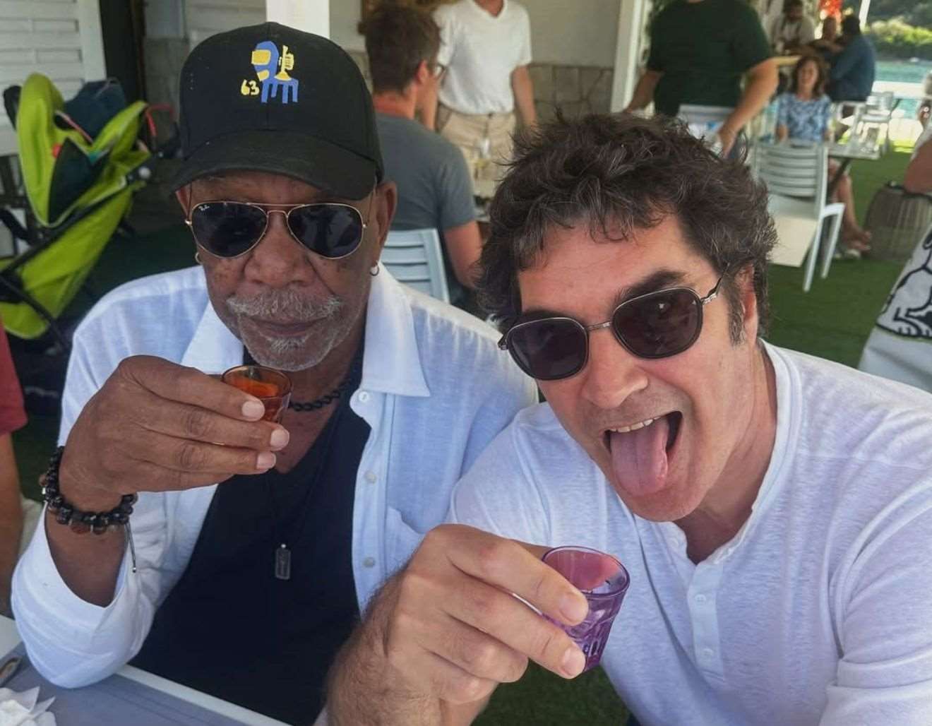 Ο Χριστόφορος Παπακαλιάτης πίνει σφηνάκια παρέα με τον Morgan Freeman στους Παξούς