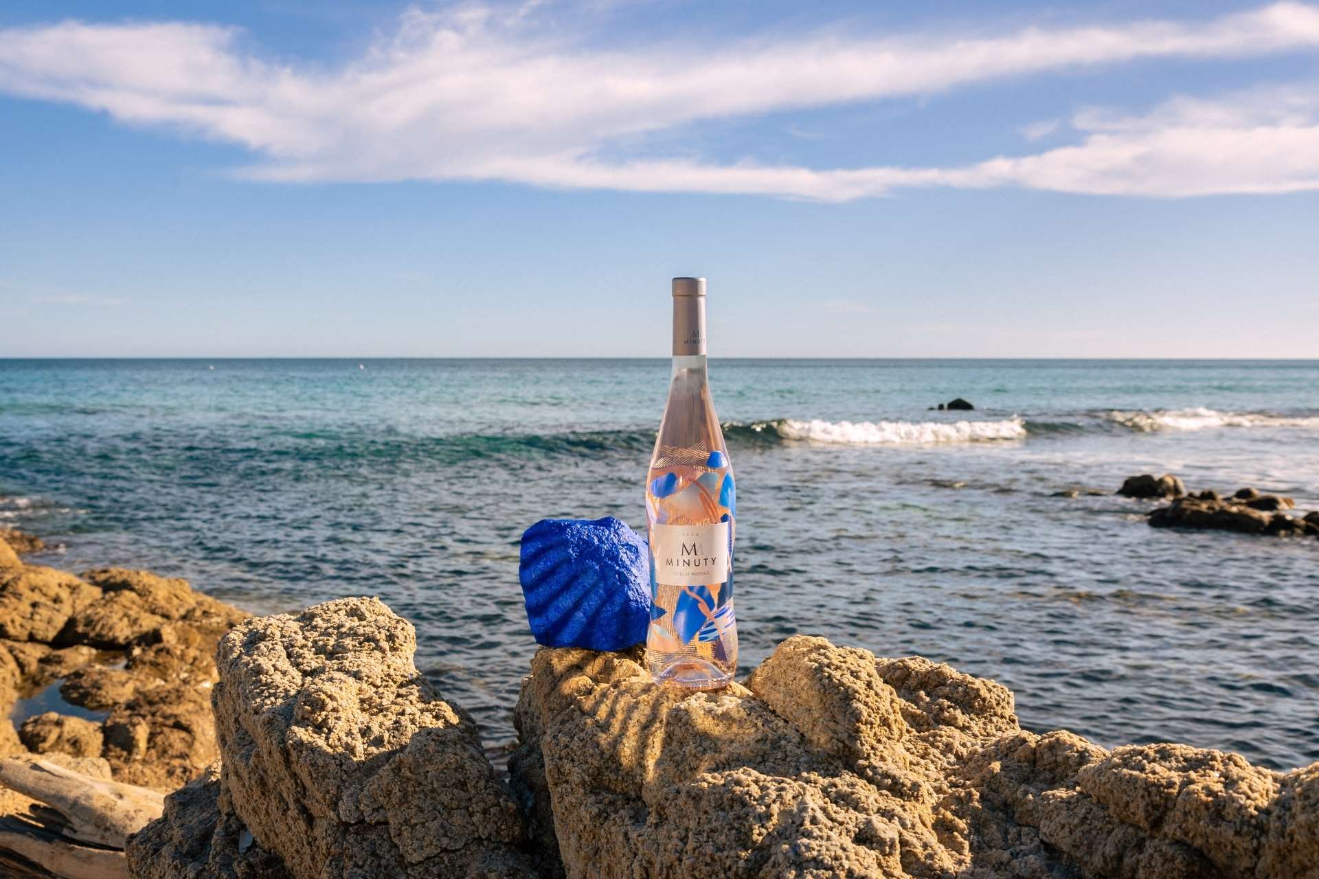 Για τη συνεργασία του με το Minuty, ο καλλιτέχνης Elliott άντλησε έμπνευση από το πάθος του για το μπλε, μια απόχρωση πανταχού παρούσα στα έργα του. Όπως ήταν φυσικό, επέλεξε να διακοσμήσει τη νέα συλλεκτική έκδοση Minuty M με αυτό το εμβληματικό χρώμα που χαρακτηρίζει τα μαγευτικά τοπία της Γαλλικής Ριβιέρας και πιο συγκεκριμένα τη χερσόνησο Σεν Τροπέ. Κάθε απόχρωση του μπλε αντανακλά τη ζωηρή ενέργεια της περιοχής, συνθέτοντας μια συμφωνία χρωμάτων που αλλάζει διαρκώς με το φως.