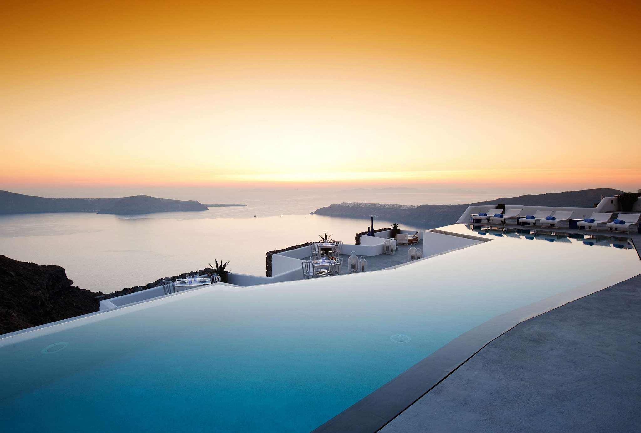 Η ελληνική πισίνα που θα βρει κάποιος σχεδόν κάθε αντίστοιχο αφιέρωμα και λίστα. Και όχι άδικα, καθώς η πισίνα του ξενοδοχείου Grace είναι κρεμασμένη στο βράχο, μοιάζει να γίνεται ένα με τη θάλασσα και όποιος κολυμπά εντός της αισθάνεται λίγο-πολύ σαν να πετά. Ένα ποτό μέσα σε αυτήν την ώρα του ηλιοβασιλέματος είναι πραγματικό όνειρο.