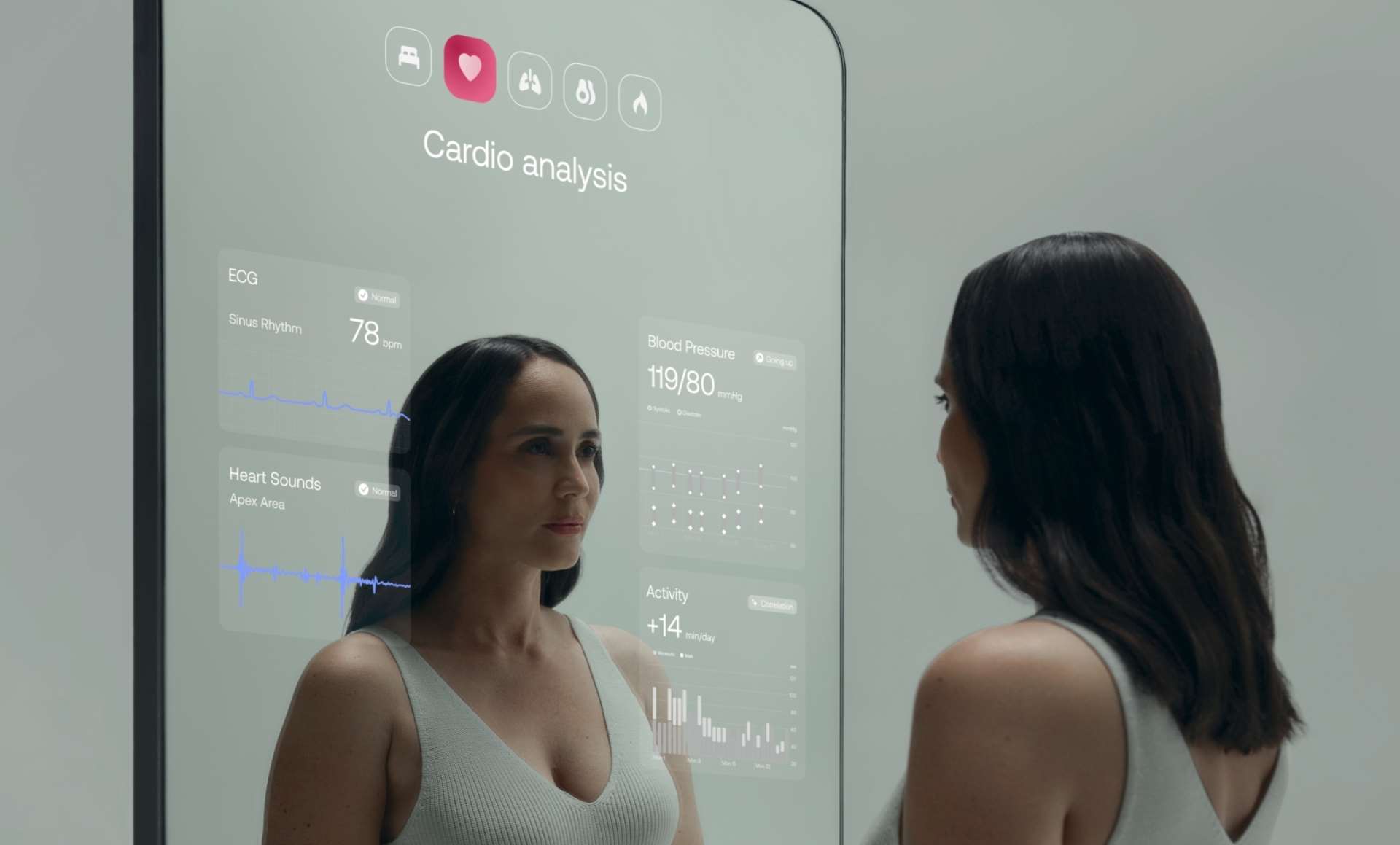 Τα δεδομένα κυμαίνονται από τη σύνθεση του σώματος και το βάρος σας μέχρι την ποιότητα του ύπνου και την πνευμονική χωρητικότητα, και όλα αυτά παρουσιάζονται στον ίδιο τον καθρέφτη -ακριβώς μπροστά σας.