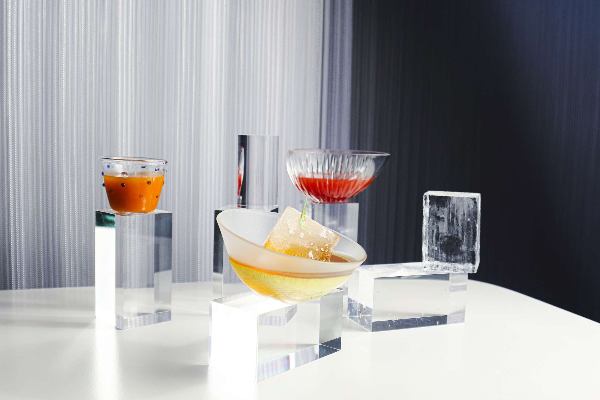 Τα κεφάλαια που συνθέτουν το μενού αντιπροσωπεύονται από δύο ποτά έκαστο – τον ρόλο του καταλόγου παίζει το Tool 001, ένα παράξενο αντικείμενο, ένα "άκαμπτο" μοντέλο, προϊόν τρισδιάστατης εκτύπωσης, με γραμμένα εντός του τα sections των γεύσεων.