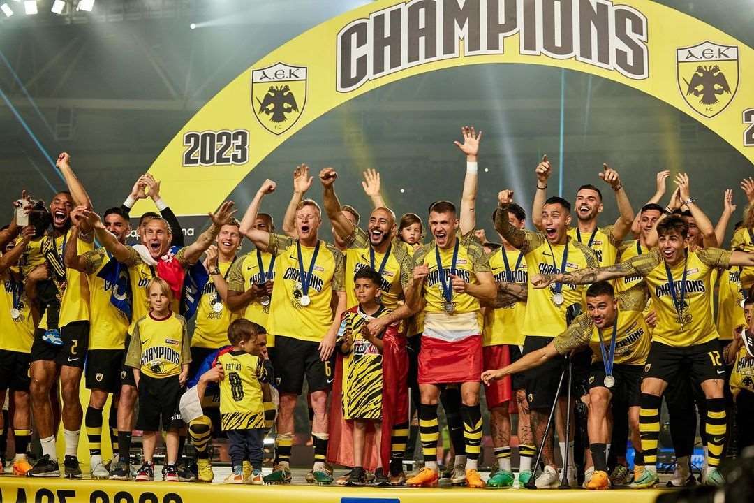 Έμεινε σχεδόν 10 βαθμούς πίσω από την κορυφή Δεκέμβρη μήνα και παρόλο που παρουσίαζε όμορφο ποδόσφαιρο, για πολύ καιρό δεν μπορούσε να το μετουσιώσει βαθμολογικά. Όταν ο Παναθηναϊκός παρουσίασε πτώση και τον πλησίασε, ήρθαν οι τραυματισμοί. Η ΑΕΚ έχασε για μεγάλο διάστημα τους δύο καλύτερους της παίκτες, τον Garcia και τον Araujo και παρ' όλα αυτά έβρισκε τη λύση να μένει όρθια. Δύο αγωνιστικές πριν το φινάλε ήταν ακόμα δεύτερη, όμως τρεις εβδομάδες αργότερα είναι νταμπλούχος Ελλάδας για το 2023.