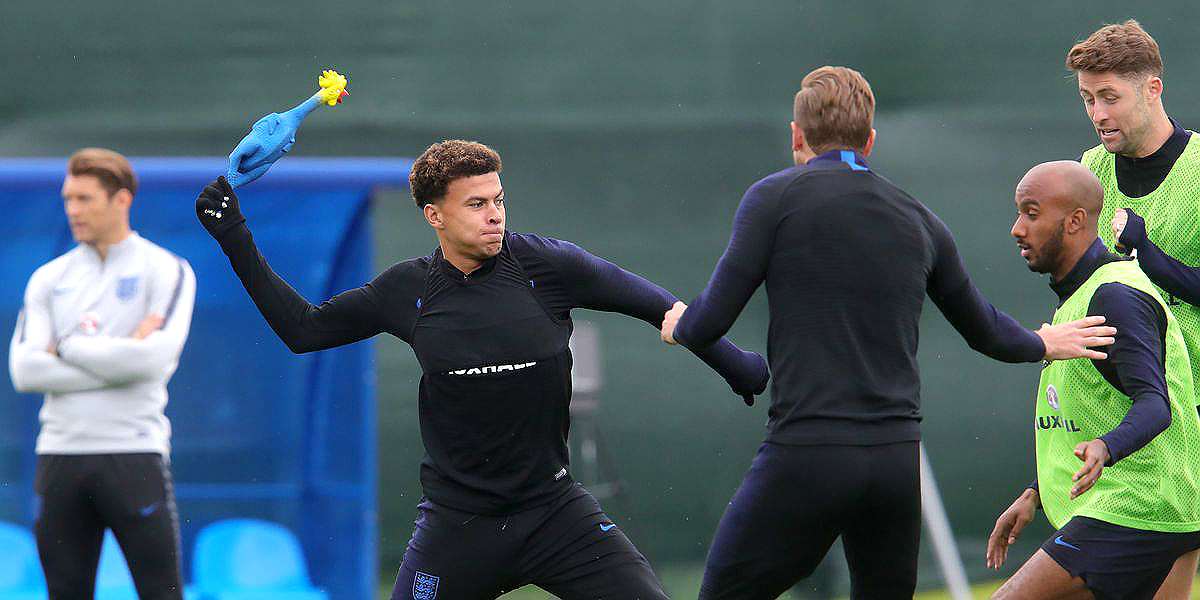 Δεν είναι λίγες οι απροσδόκητες στιγμές στο φετινό Παγκόσμιο Κύπελλο της Ρωσίας, αλλά όπως και να το κάνουμε προκαλεί τουλάχιστον ερωτηματικά το να βλέπεις τον Harry Kane, μία μέρα πριν το σημαντικότερο ματς της καριέρας του, να προσπαθεί να σώσει τον Fabian Delph από μια επίθεση του Dele Alli με ένα πουλερικό από καουτσούκ.