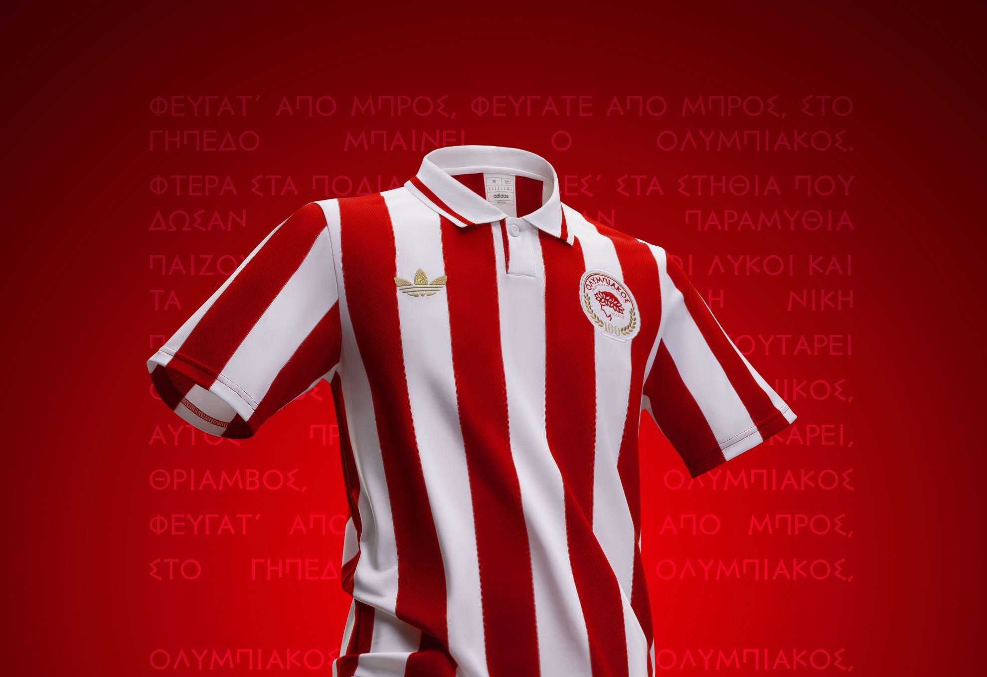 Η συλλεκτική επετειακή εμφάνιση τιμά τα 100 χρόνια επιτυχίας και δόξας της θρυλικής ομάδας του Ολυμπιακού και θα είναι διαθέσιμη στο ηλεκτρονικό κατάστημα Red Store, στη μπουτίκ του Ολυμπιακού και σύντομα στο adidas store (Ερμού 44).