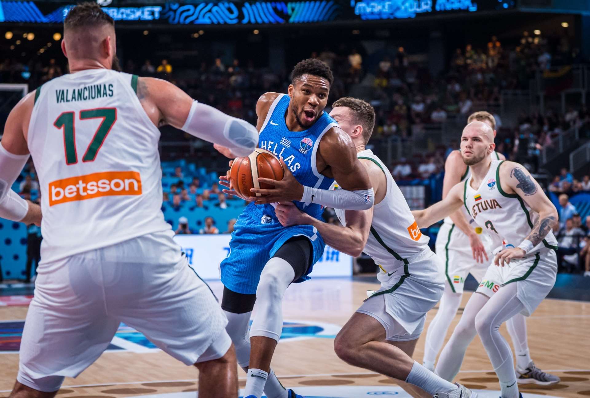 Ο Κώστας Αντετοκούνμπο με τις 4 τρομακτικές τάπες του αισθάνεσαι ότι έριξε το ηθικό των αντιπάλων. Μετά από αυτές κανείς από τους Λιθουανούς δεν είχε το θάρρος να πάει aggressive προς το ελληνικό καλάθι. Ο Μήτογλου τα έβαλε με το θηρίο Γιόνας Βαλαντσιούνας και βγήκε νωρίς εκτός αγώνα, όμως όλοι περιμένουμε ένα ακόμα μεγάλο παιχνίδι από αυτόν. Ο Αλέξανδρος Σαμοντούροφ παίζει σαν έτοιμος παίκτης παρά το νεαρό της ηλικίας του. Όλα τα παιδιά είναι εκεί και βάζουν πλάτη στην ομάδα με τη διάθεσή τους και έτοιμοι να προσφέρουν όποτε χρειαστεί όπως οι Θανάσης Αντετοκούνμπο, Δημήτης Κατσίβελη, Παναγιώτης Καλαϊτζάκης και Γιαννούλης Λαρεντζάκης.