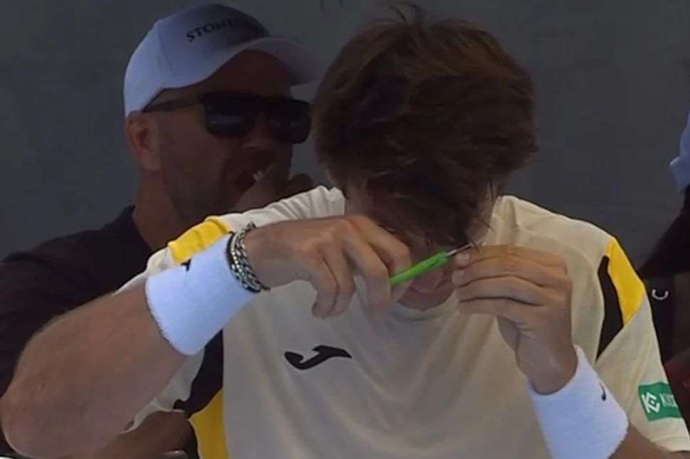 Καθισμένος στην καρέκλα δίπλα στο κορτ, άρχισε να κόβει μόνος του τη φράντζα του. Όχι για το θέαμα, όχι για να προκαλέσει, αλλά –όπως φάνηκε– επειδή τα μαλλιά του του έπεφταν στα μάτια και τον ενοχλούσαν στην ορατότητα. Το Νο 43 της παγκόσμιας κατάταξης έλυσε το πρόβλημα με τον πιο άμεσο τρόπο.