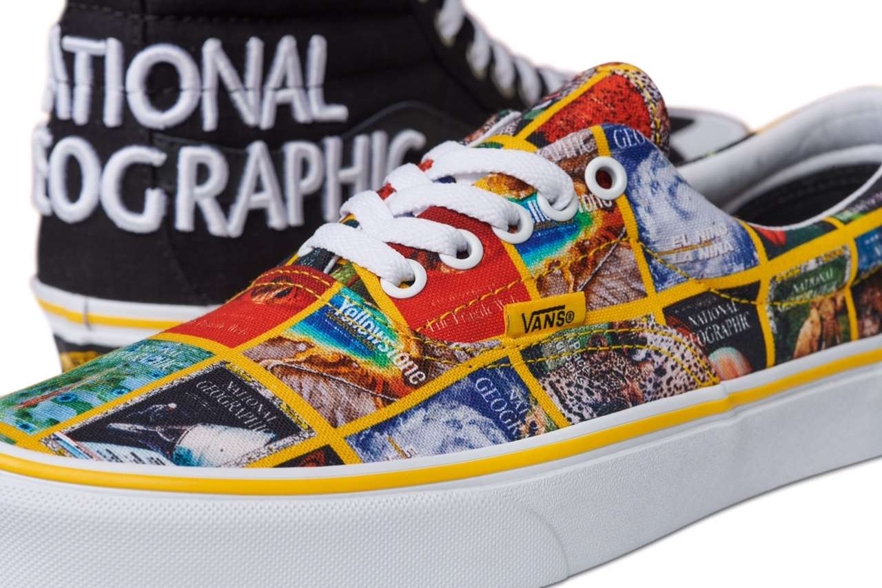 Περιλαμβάνει έξι μοντέλα υποδημάτων classics με μοναδικά λογότυπα και φωτογραφίες του National Geographic: Sk8-Hi Reissue 138, Old Skool, Authentic, Era, Classic Slip-On και UltraRange EXO. Εξίσου αναγνωρίσιμο με την πλαϊνή γραμμή Vans Sidestripe, το κίτρινο περίγραμμα του National Geographic προκαλεί μια αίσθηση περιπέτειας και αδιάκοπης εξερεύνησης. Και τα δύο λογότυπα εμφανίζονται περήφανα σε ένα μόνο μοντέλο της συλλογής, το Sk8-Hi Reissue 138. Το Era ξεχωρίζει καθώς διαθέτει all-over τύπωμα παρουσιάζοντας εμβληματικά εξώφυλλα των περιοδικών του National Geographic από το παρελθόν. Τα παιδιά μπορούν επίσης να βρουν τον εξερευνητή μέσα τους, φορώντας το Xtreme Ranger με το λογότυπο του National Geographic ή το Classic Slip-On καλυμμένο από ένα καλειδοσκόπιο μοναδικών εικόνων του National Geographic Photo Ark -την προσπάθεια του φωτογράφου Joel Sartore να καταγράψει στο φακό κάθε είδος, για να υποστηρίξει την προστασία της άγριας ζωής.