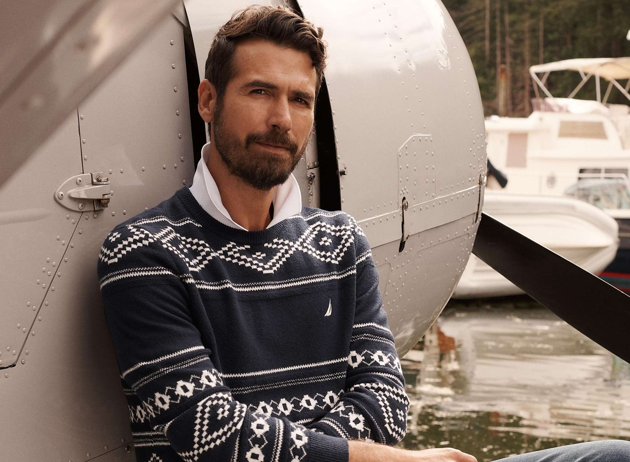 Πώς θα φορέσεις το navy blue πουλόβερ με το ρετρό σχέδιο από τη Nautica