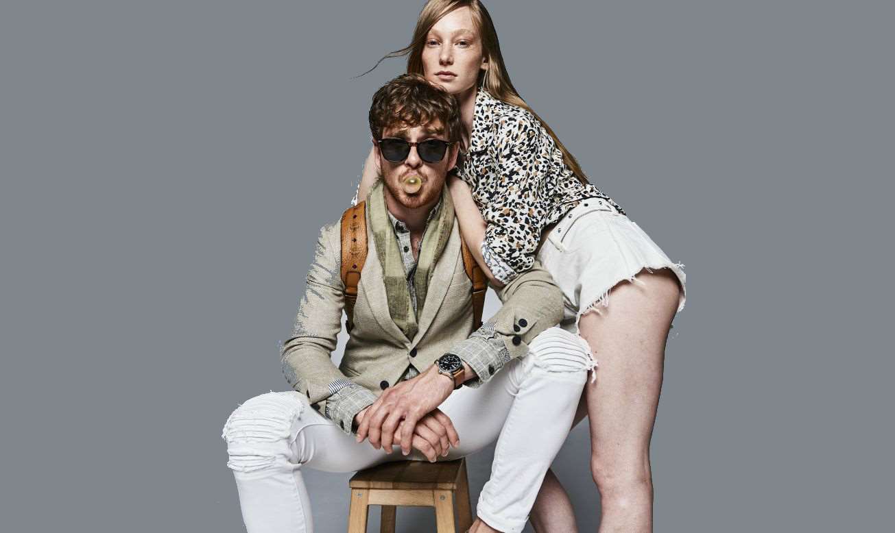 Lucas: Σακάκι και φουλάρι Antony Morato, πουκάμισο Tom Tailor, και παντελόνι Pepe Jeans (όλα Shop & Trade). Ζώνη Gant. Εσπαντρίγιες Salvatore Ferragamo (Salvatore Ferragamo Boutique). Γυαλιά ηλίου Lozza (De Rigo Hellas). Ρολόι Diesel (Diesel Hellas). Backpack MCM (MCM Boutique).