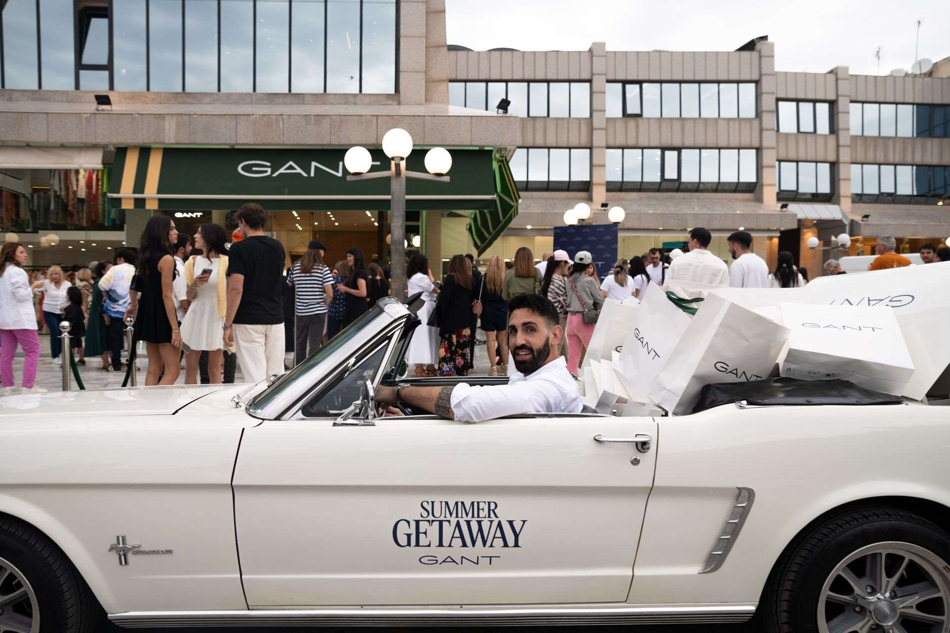 Ένα λευκό Ford Mustang με το λογότυπο GANT Summer Getaway μετατράπηκε σε φωτογραφικό spot, όπου οι καλεσμένοι φωτογραφήθηκαν με Polaroid, δημιουργώντας instant αναμνήσεις.