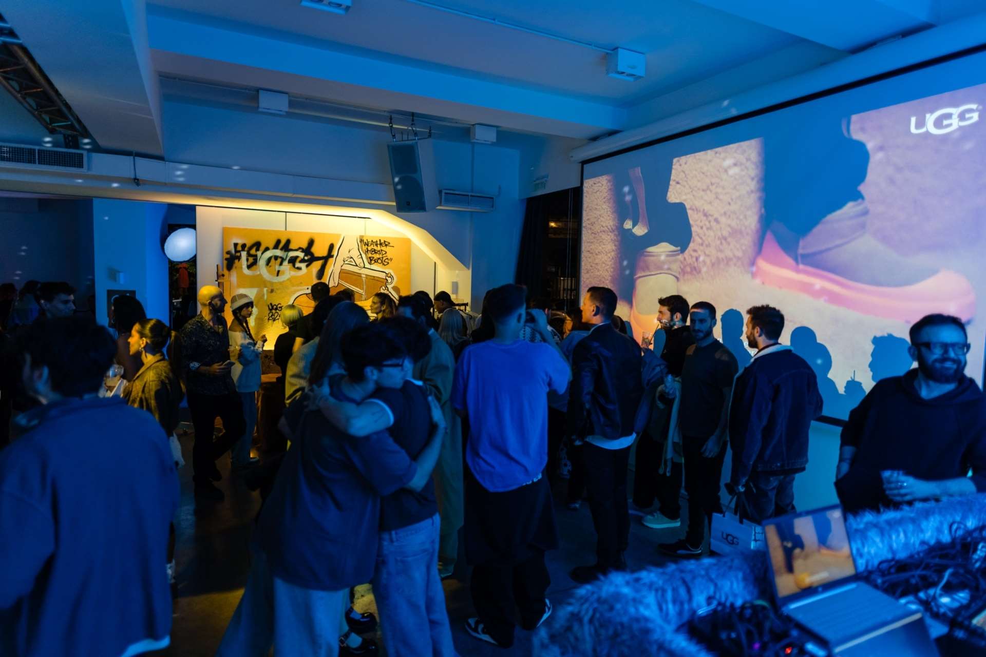 Μία από τις πιο ιδιαίτερες στιγμές της βραδιάς ήταν η παρουσία του Same84, του street artist που είναι γνωστός για τα μεγάλης κλίμακας murals του. Για το event δημιούργησε ένα ειδικά σχεδιασμένο mural με το UGG Weather Hybrid Boot και στη συνέχεια ετοίμαζε live μοναδικά t-shirts με spray για τους καλεσμένους. Κάθε μπλουζάκι είχε μια παραλλαγή του παπουτσιού, ενώ ο καθένας μπορούσε να ζητήσει το όνομά του ή μια μικρή φράση, κάνοντας το κομμάτι εντελώς προσωπικό.