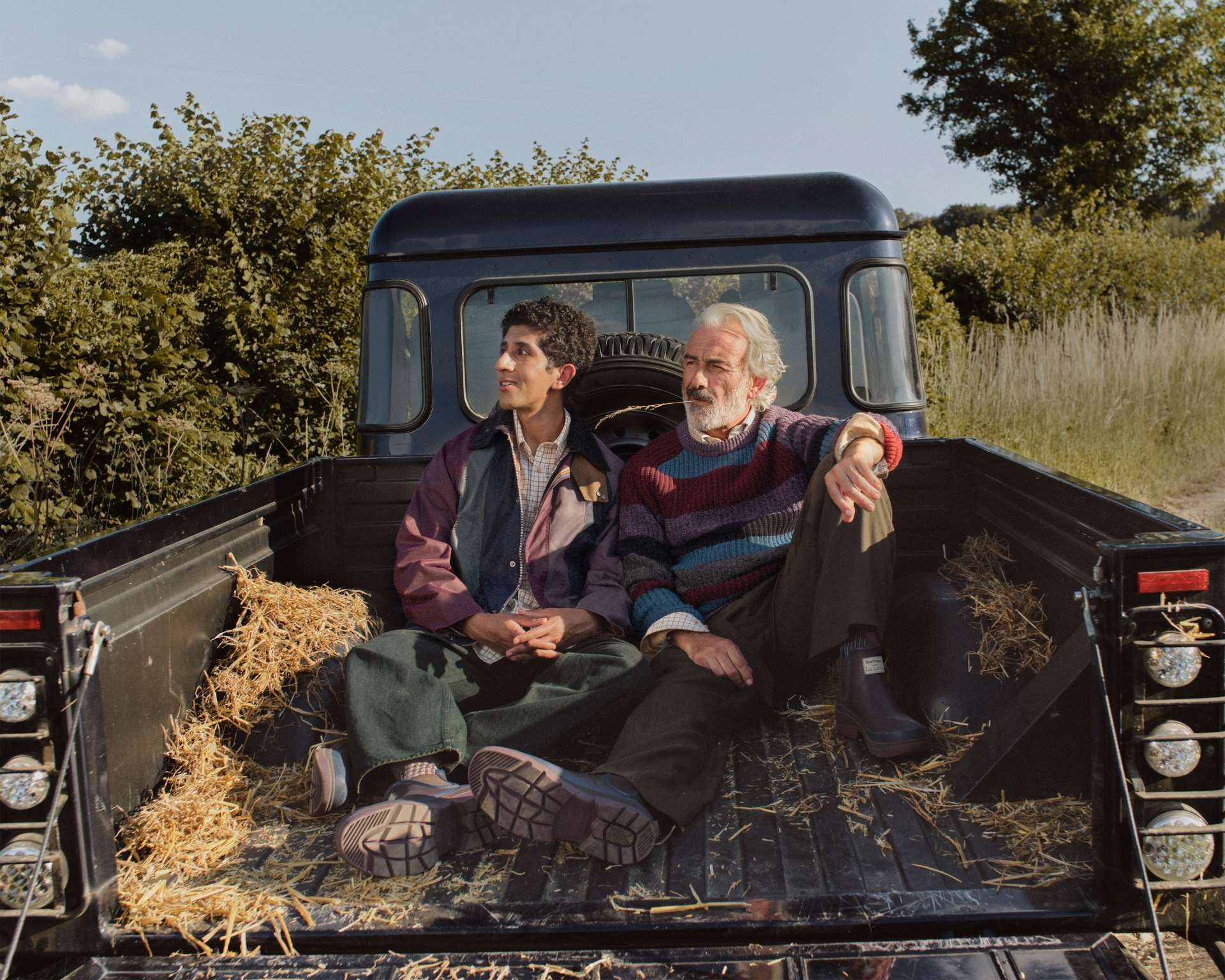 Τα αφράτα πλεκτά, φτιαγμένα από νήμα που θυμίζει sprinkles με διάφορες χρωματικές νότες, είναι σχεδιασμένα για layering κάτω από ένα waxed jacket, ενώ οι γαλότσες και τα bucket hats εξοπλίζουν τη συλλογή για κάθε πιθανή ανατροπή του καιρού. Και φυσικά, τα enamel pins της Barbour επιστρέφουν σε εκδοχές Paul Smith — πράσινοι παπαγάλοι, ροζέτα και η χαρακτηριστική αγελάδα της σειράς.