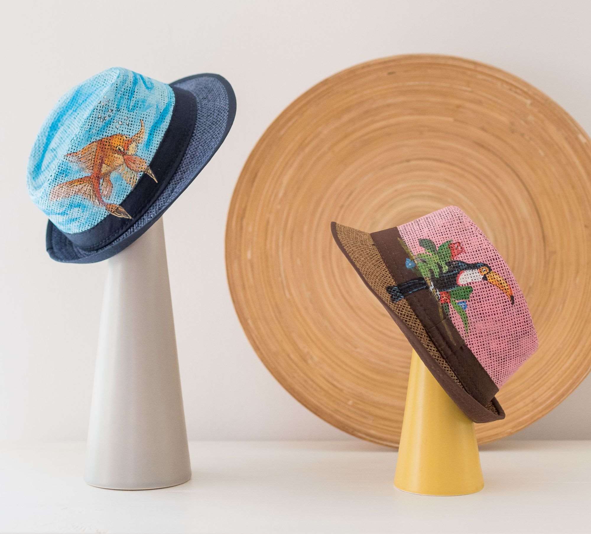 Μοναδικά καπέλα ζωγραφισμένα στο χέρι εμπνευσμένα από την ελληνική ομορφιά αλλά και με έθνικ επιρροές.