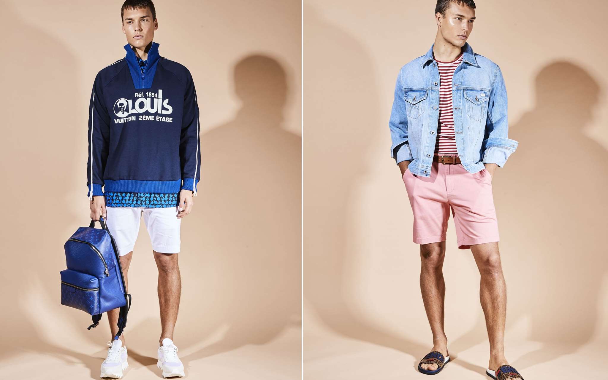 Φούτερ, πουκάμισο, sneakers και backpack, όλα Louis Vuitton (Louis Vuitton Boutique). Βερμούδα Polo Ralph Lauren ( Attica).