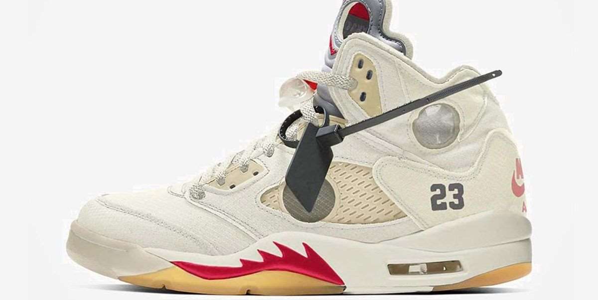 Τα Air Jordan 5 Off-White x Nike sneakers, αν και δεν γνωρίζουμε προς το παρόν πότε θα κυκλοφορήσουν στην αγορά, είναι ένα συλλεκτικό ζευγάρι σε λευκό χρώμα με κόκκινες ή γαλάζιες λεπτομέρειες, αναλόγως το σχέδιο που επιλέξει κάποιος και συνδυάζει το δέρμα με το σουέντ.