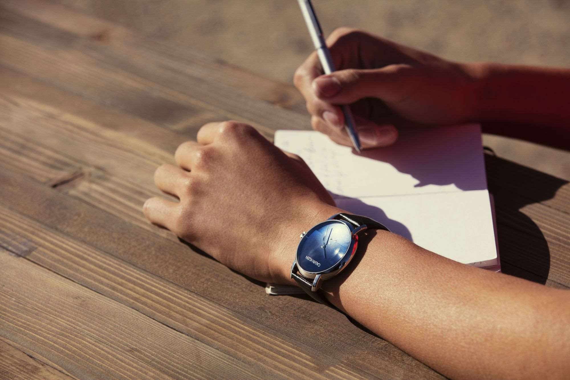 Το λιτό αλλά άρτια σχεδιασμένο καντράν από ανοξείδωτο ατσάλι αναδεικνύεται χάρη στο μπλε χρώμα και σττην αφαίρεση των ενδείξεων της ώρας - έχουν διατηρηθεί μόνο τα "σημεία του ορίζοντα" δηλαδή η 12η, η 3η, η 6η και η 9η ώρα. Το κομψό αυτό μοντέλο πλαισιώνεται από ένα απαλό μαύρο δερμάτινο λουράκι, διατίθεται επίσης με ασημί ή μαύρο καντράν, ενώ, όπως προστάζει το unisex στυλ του οίκου, κυκλοφορεί και αντίστοιχο γυναικείο.