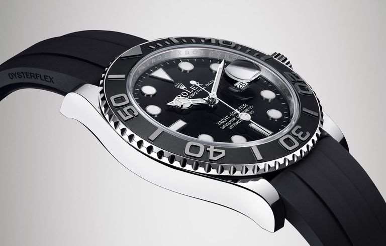 6. Rolex Yacht-Master με κάσα διαμέτρου στα 42mm από λευκόχρυσο 18κ με μαύρο λουράκι από καουτσούκ, €25.700.