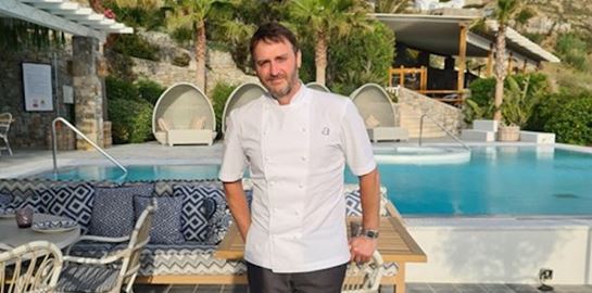 O mega-famous chef Jason Atherton μαγειρεύει στην έδρα του: Στο δικό του εστιατόριο Mykonos Social εντός του πολυτελούς Santa Marina Resort.